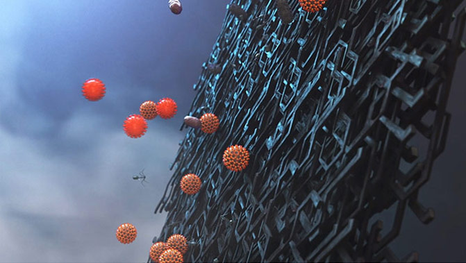 Grimcat nano kapen teksa rrjedhin nëpër aerodromin lëvizës dhe afrohen shumë me një fibër të filterit dhe bllokohen nga përgjimi, kurse të tjerat bllokohen nga difuzioni. Grimcat përplasen në njëra-tjetrën dhe thithen nga fibrat e filterit HEPA.
